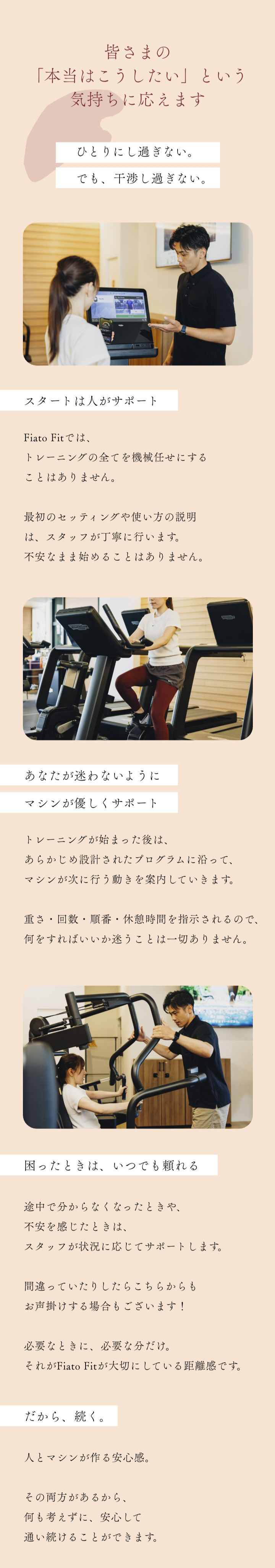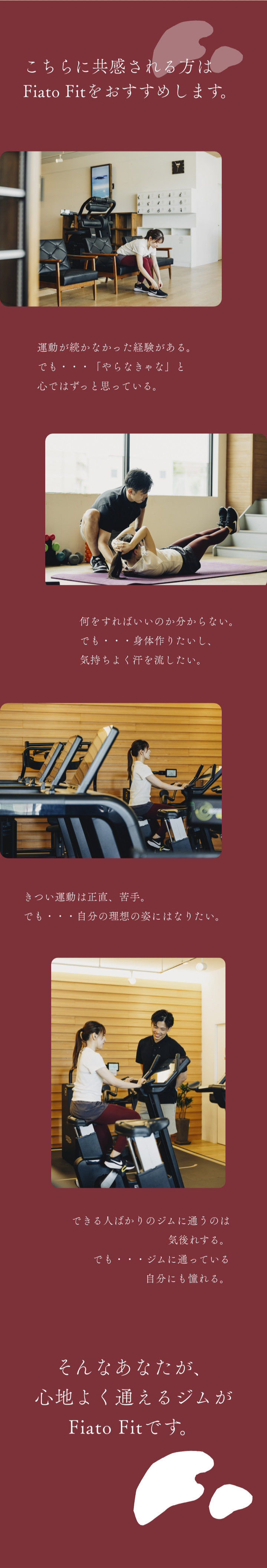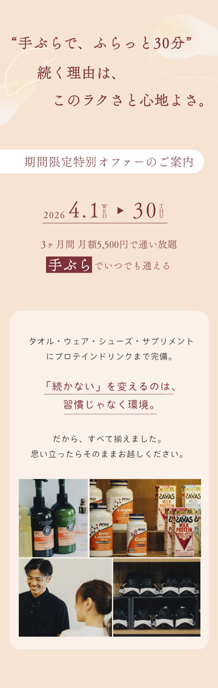同僚の紹介で通い始めました。最初は不安でしたが、トレーナーさんの丁寧な指導で楽しく続けられています。仲間の変化を見るのも刺激になり、通うのが楽しみです。
